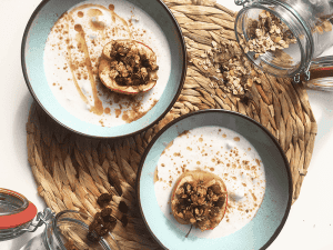 Appeltjes uit de oven in appelkaneelyoghurt