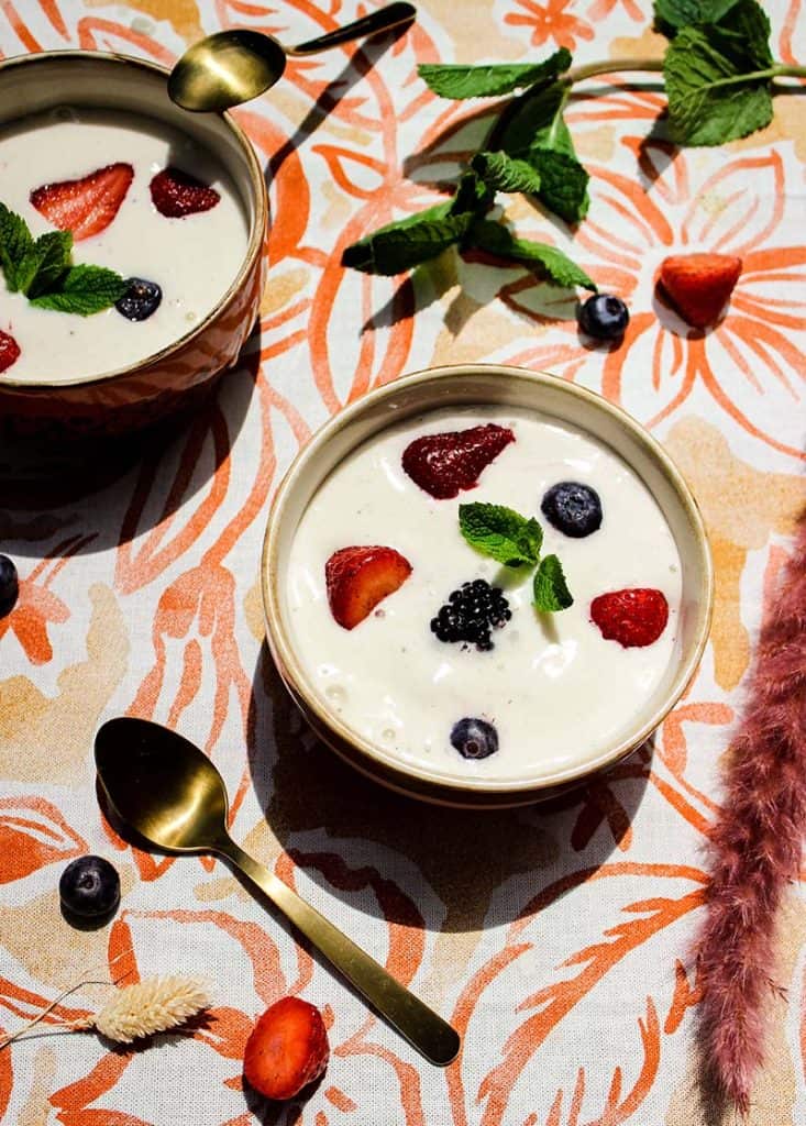 Om de goede textuur te krijgen heb je een vloeibaar ingrediënt nodig. In dit geval gebruikte ik kefir, wat de nicecream nog gezonder maakt. De probiotica uit kefir zijn goed voor je darmflora en daarnaast zit het barstensvol voedingsstoffen. Daarnaast geeft kefir een lekker frisse smaak aan de nicecream, net anders dan wanneer je bijvoorbeeld (een plantaardige) melk zou gebruiken. De kefir zorgt dus voor een andere smaak en maakt mijn darmen blij; win-win! Ik ging aan de slag en maakte mijn eigen kefir met de producten van yoghurt.nl.