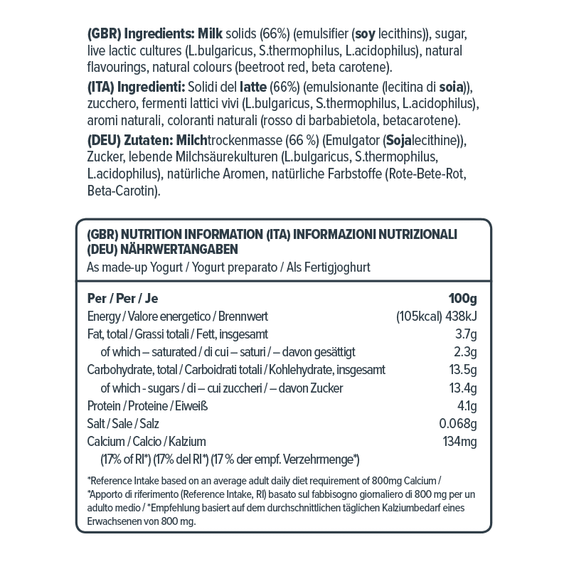 Onze yoghurtmixen bevatten alleen natuurlijke ingrediënten – geen kunstmatige kleurstoffen, aroma’s of conserveermiddelen.