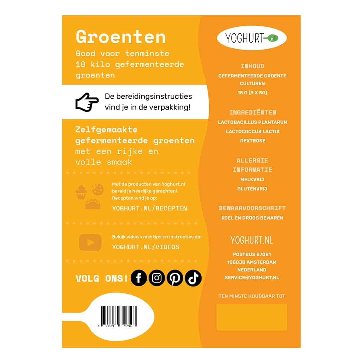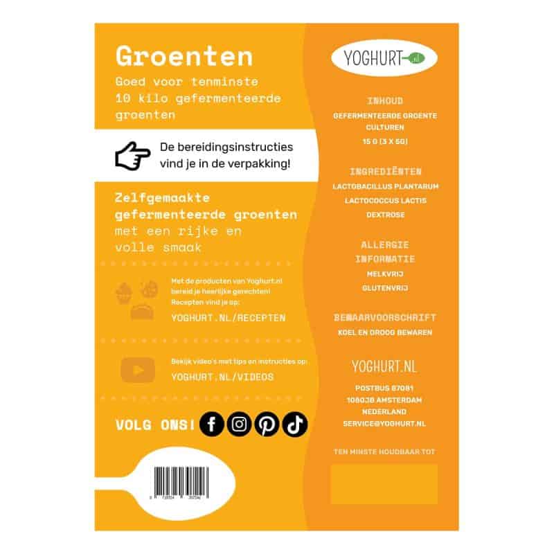 Gefermenteerde groenten starterculturen voor ten minste 10 kilo gefermenteerde groenten. Met deze starterculturen kan je eenvoudig diverse groenten fermenteren zoals komkommer, selderij, bonen, bieten, asperges, paprika en nog veel meer.