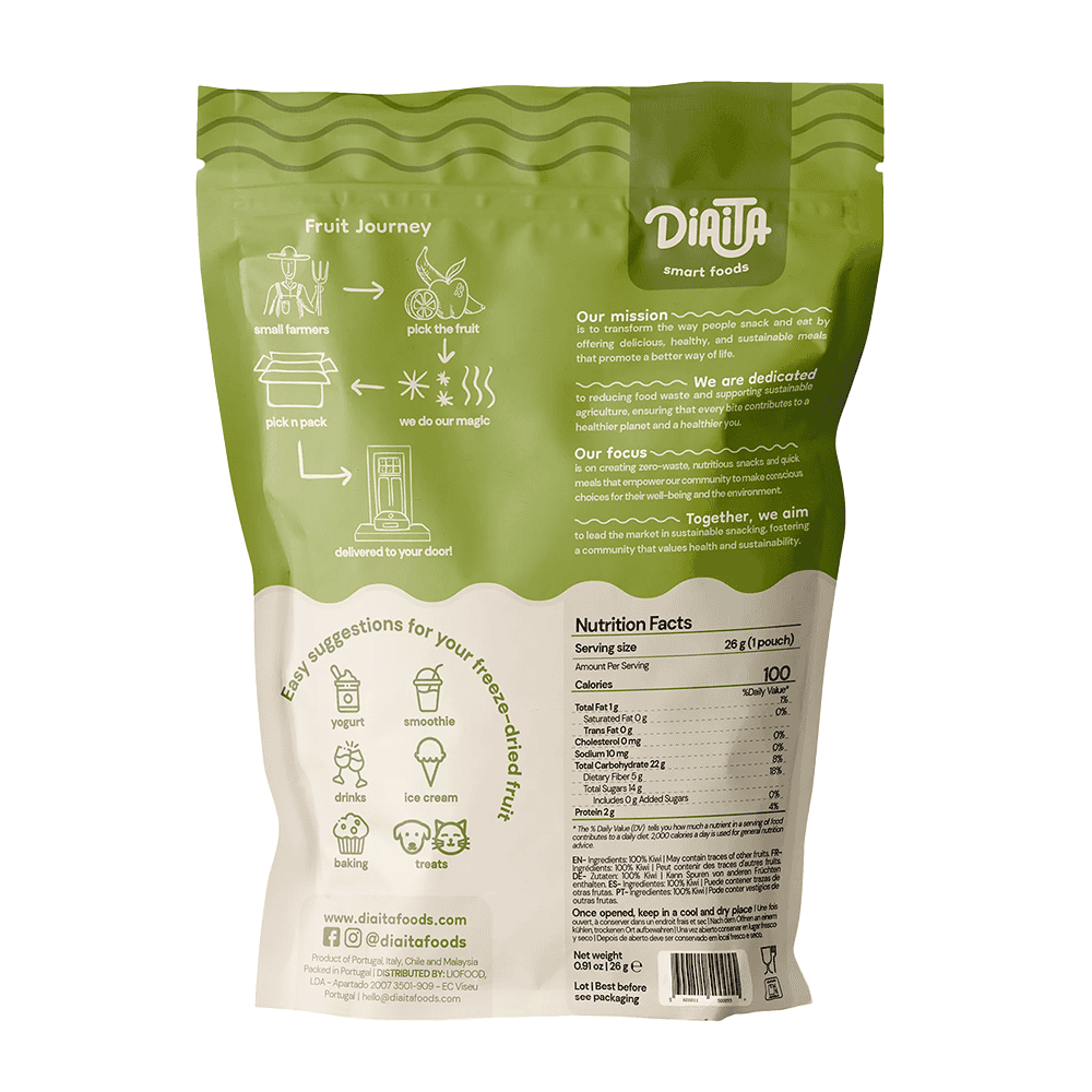 Diaita is een Portugees merk dat staat voor pure ingrediënten en slimme, moderne snacks. Met focus op kwaliteit en eenvoud brengt Diaita het beste van fruit samen in een knapperige, handige vorm die perfect past bij een druk leven. Wat is gevriesdroogd fruit precies?