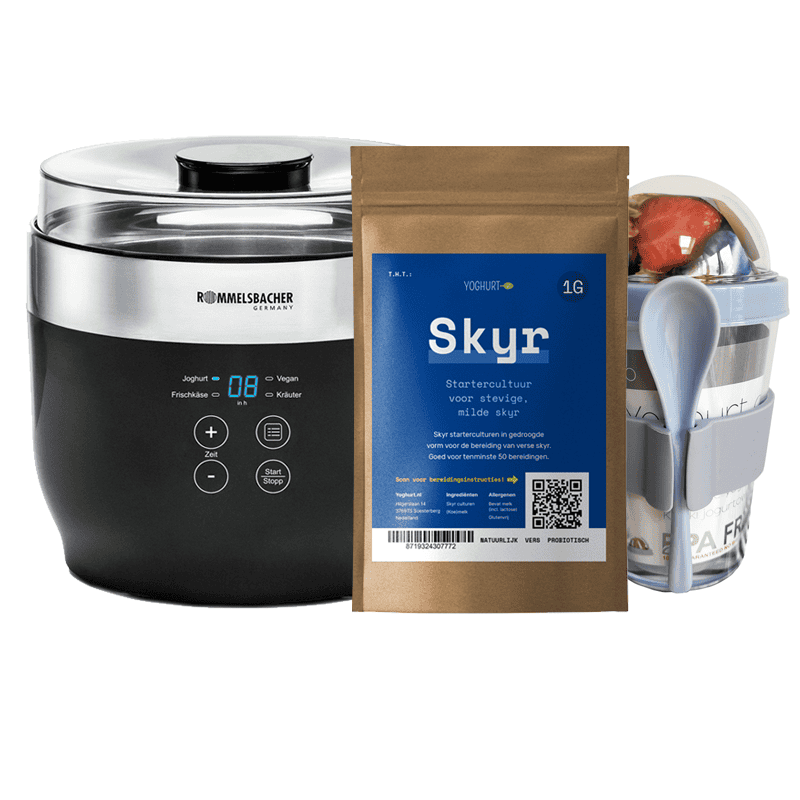 Starten met skyr maken? Met de premium yoghurtmaker van Rommelsbacher en onze eigen skyrculturen wordt zelf skyr maken een fluitje van een cent!