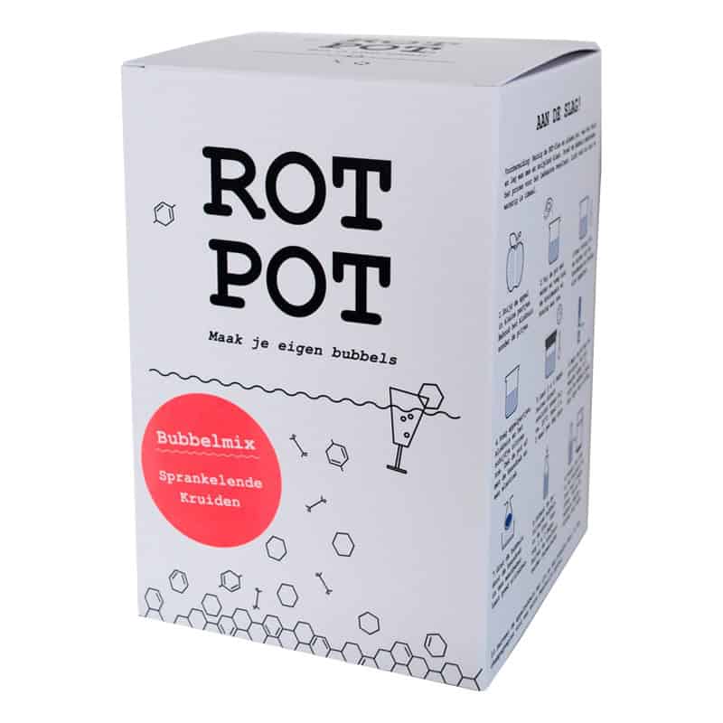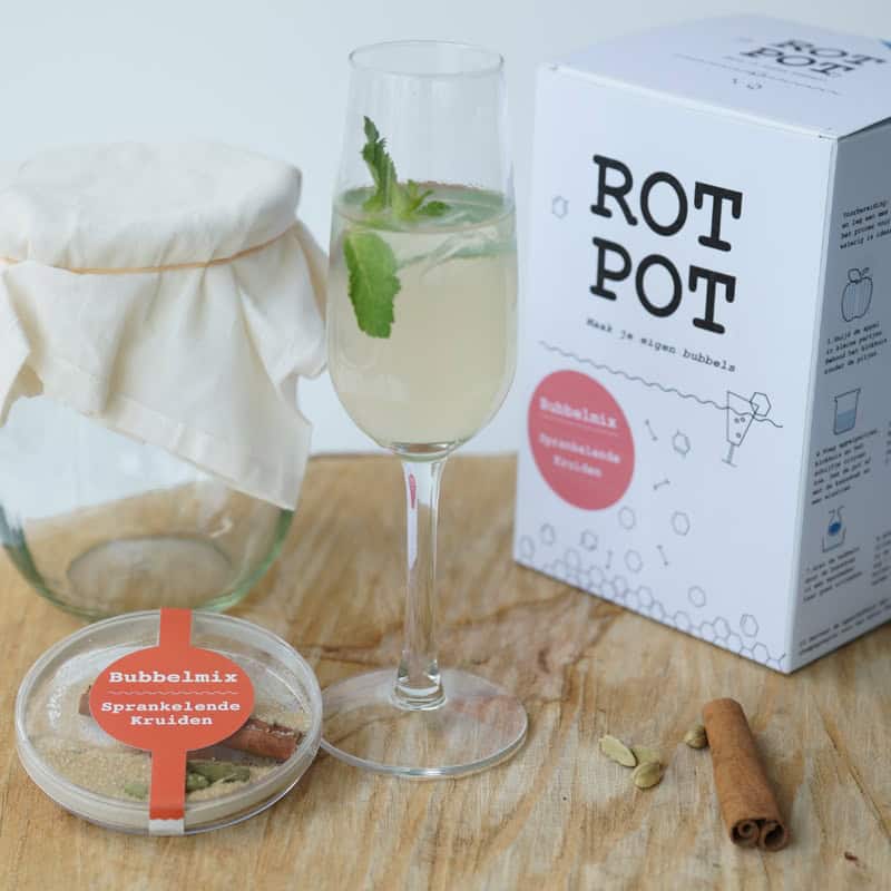 Met de RotPot maak je eenvoudig zelf appelbubbels. Bijna alles wat je nodig hebt zit in de doos. Alleen de verse ingrediƫnten voeg je zelf toe.