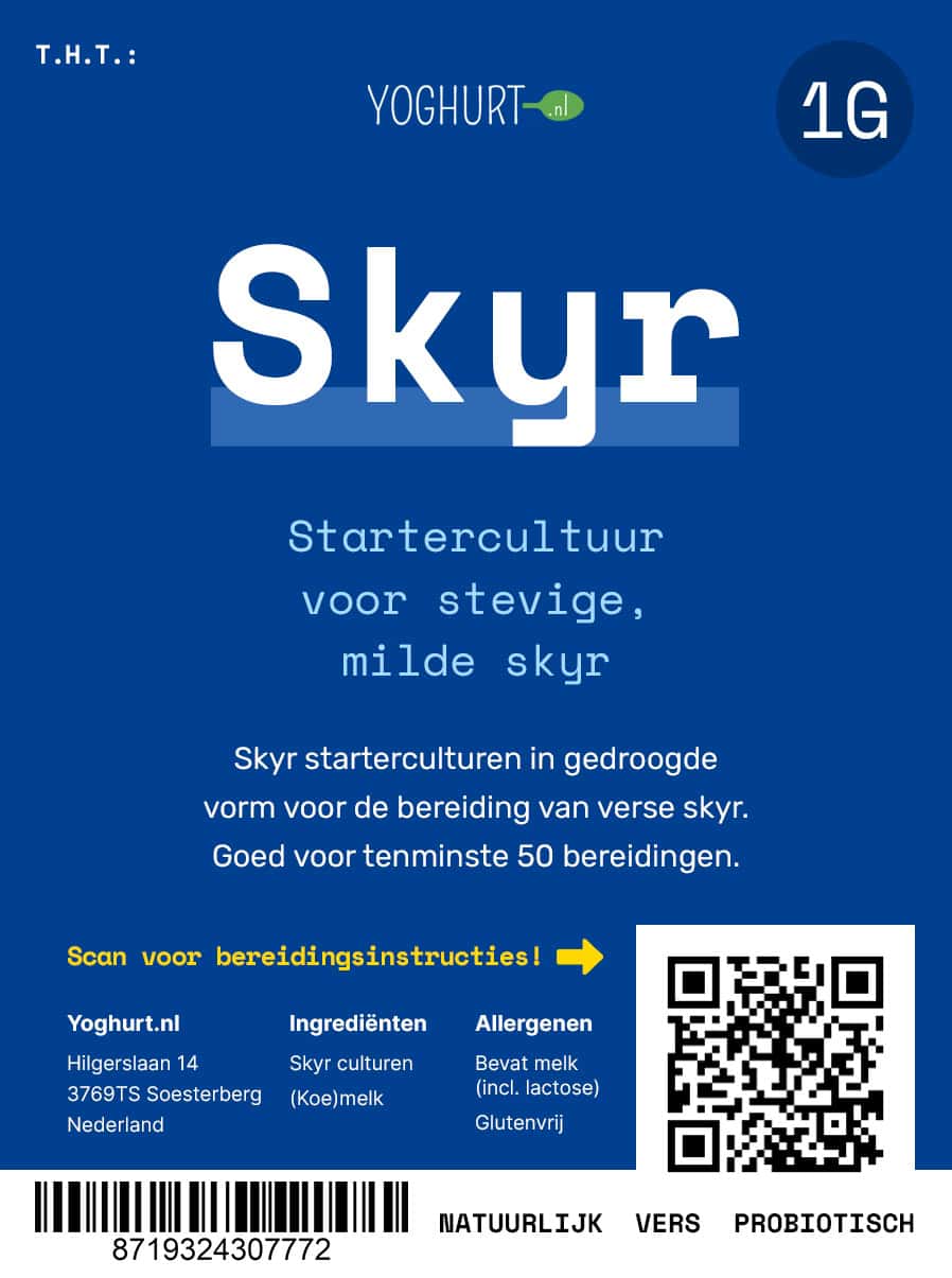 Skyr starterculturen voor de bereiding van minstens 50 liter skyr. De zelfgemaakte skyr heeft een milde, romige smaak en stevige structuur en is eenvoudig te bereiden.