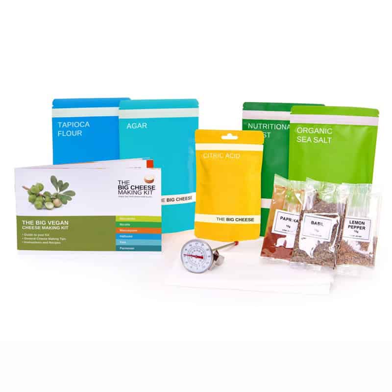 Deze vegan kaaskit bevat alles wat je nodig hebt om zelf veganistische kaas te maken! Erg leuk om zelf te doen, maar natuurlijk ook erg leuk om als cadeau weg te geven. Iedere zelfgemaakte kaas heeft zijn eigen karakteristieke en unieke smaak. Voor ieder wat wils dus!
