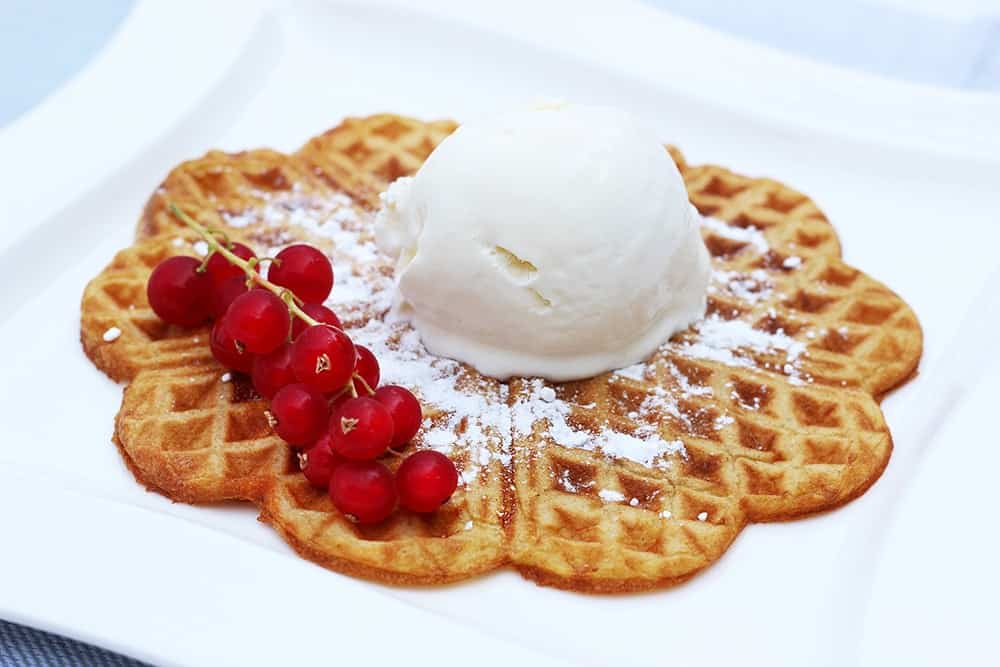 Wafels zijn eigenlijk altijd goed: als een zondags ontbijt, een hartige variant als lunch, of natuurlijk deze variant met verse vruchten die het goed doet als toetje. Slagroom of een bol ijs erbij, of natuurlijk allebei en je hebt het perfecte nagerecht