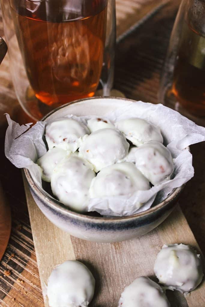 - Wanneer alle pepernoten zijn ondergedompeld in het mengsel zet je deze nog minimaal 2 uur in de vriezer zodat ze kunnen uitharden. Voordat de pepernoten worden opgediend laat je deze nog even op kamertemperatuur komen.